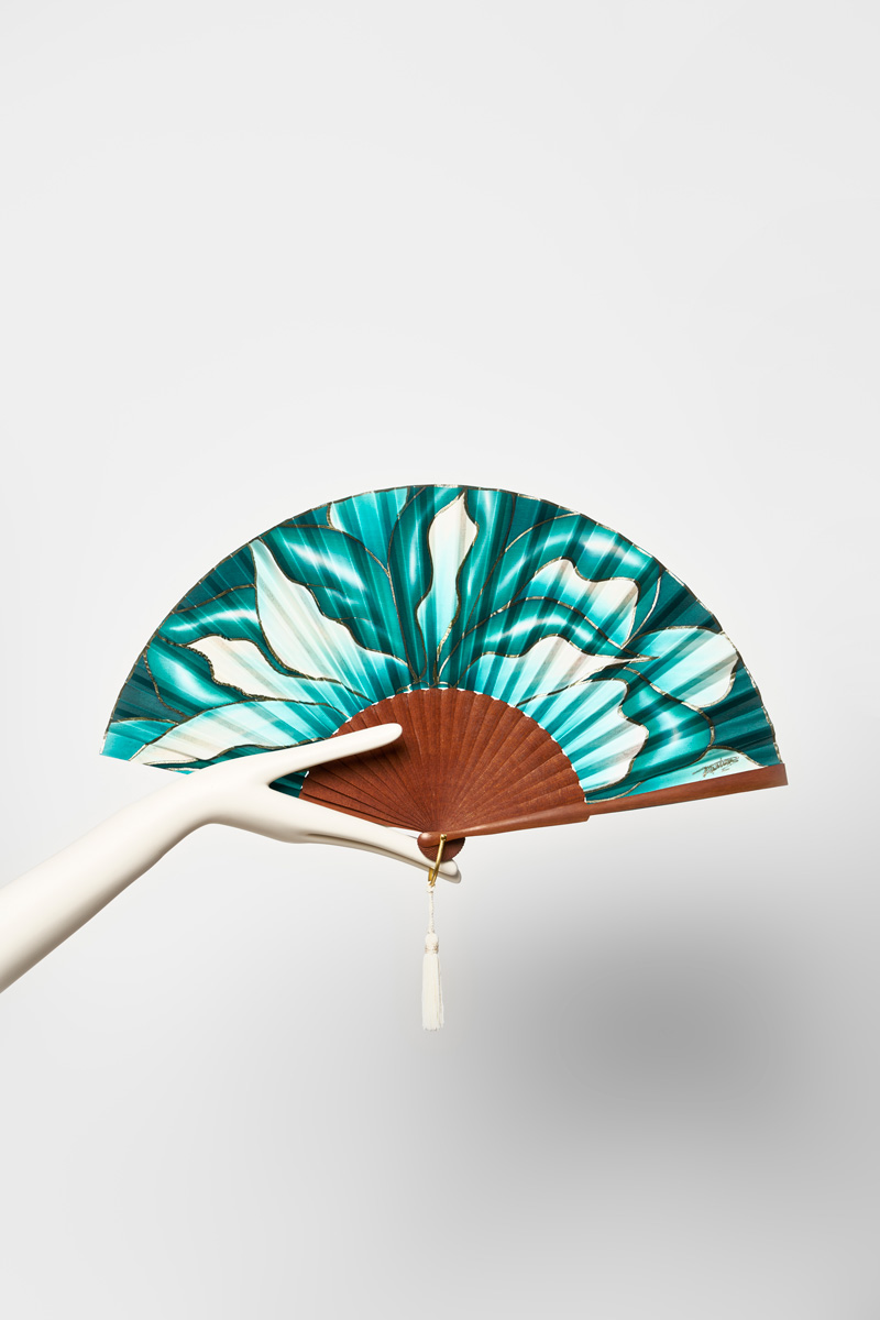 ABANICO GRANDE ESSENCE FLOR EN VERDE JADEAbanico grande Essence flor en verde jade