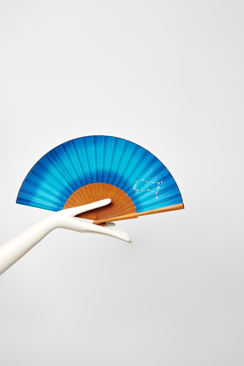 Abanico de 23 cm con la constelación de Géminis realizada con cristales auténticos de Swarovski. Pertenece a la colección Cosmos que representa la constelación de tu horóscopo brillando en el firmamento. Las constelaciones son una forma muy original de personalización ideal para regalar en un cumpleaños.