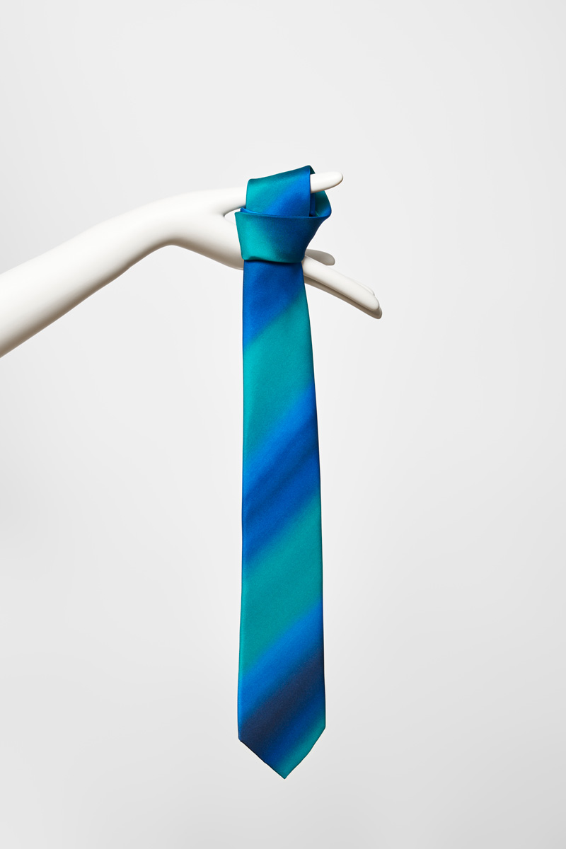Elegante corbata en tonos degradados azules y verdes que recuerdan a las profundidades del mar.