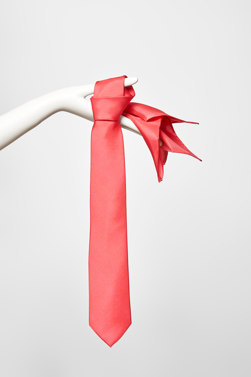 Precioso set de corbata y pañuelo en tono rojo coral pintadas a mano y con acabado artesanal perfecto.